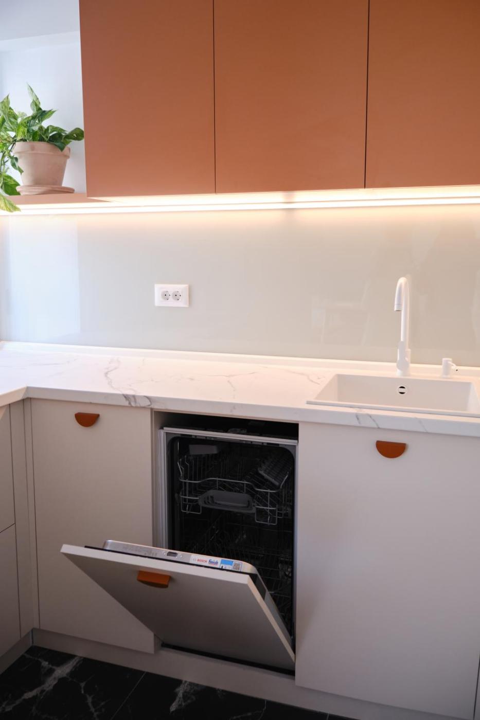 One-Bedroom Apartment. This apartment features 1 living room, 1 separate bedroom and 1 bathroom with a shower and free toiletries. The well-fitted kitchen features a stovetop, a refrigerator, a dishwasher and kitchenware. This apartment is air-conditioned and has a seating area with a flat-screen TV, a washing machine, a coffee machine, a dining area, as well as a wardrobe. The unit has 2 beds.