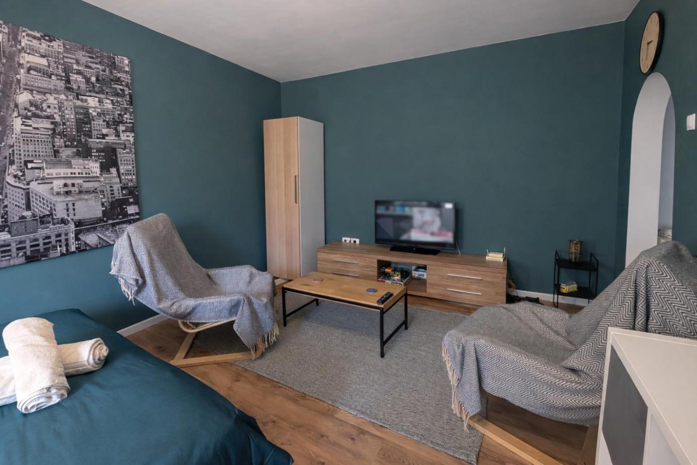 One-Bedroom Apartment. The apartments kitchen is available for cooking and storing food. The apartment provides air conditioning, a washing machine, heating, as well as a flat-screen TV. The unit offers 1 bed.