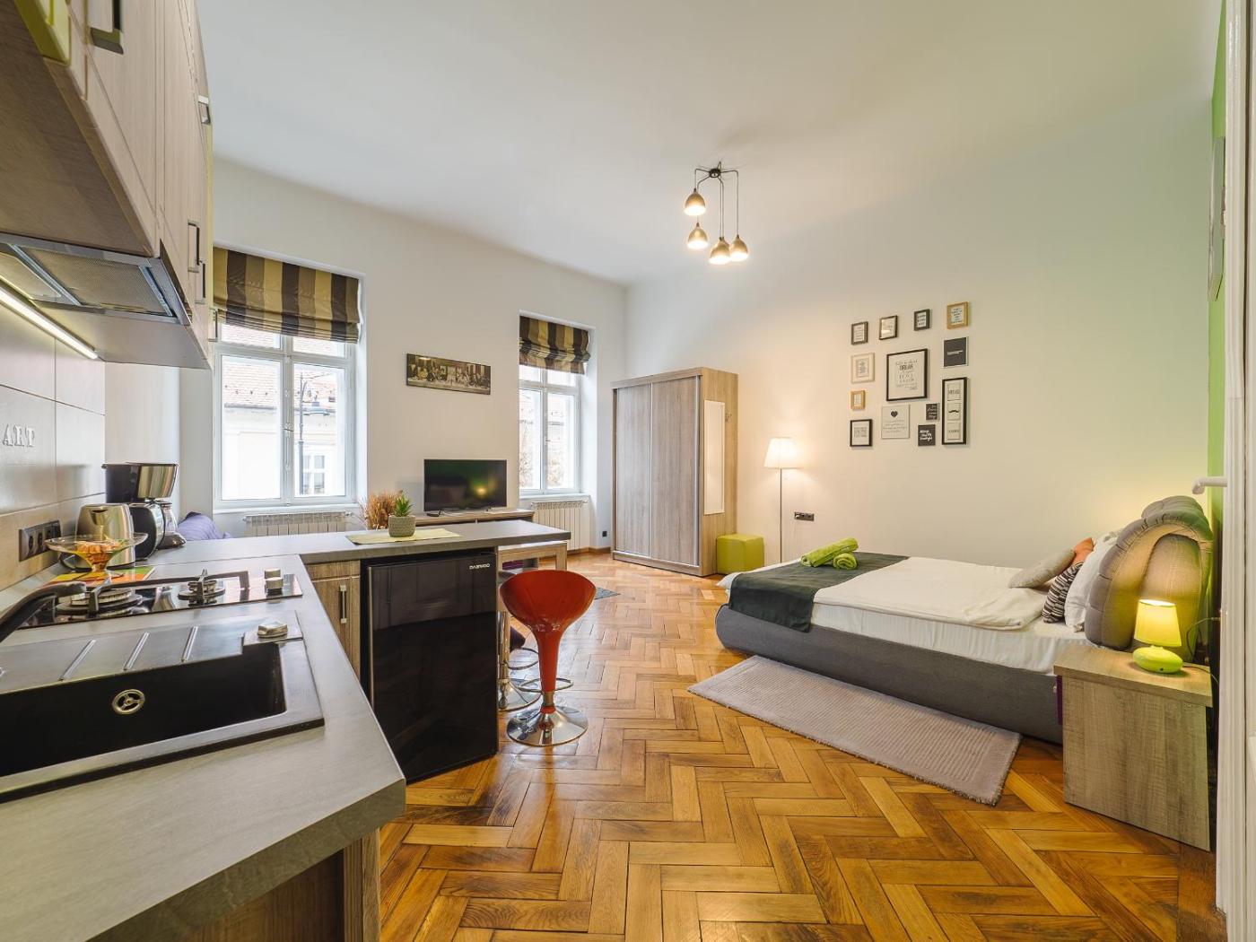 One-Bedroom Apartment. The apartment features 1 bedroom and 1 bathroom with a walk-in shower and free toiletries. In the kitchenette, guests will find a stovetop. This apartment has a minibar, a tea and coffee maker, flat-screen TV with cable channels, as well as chocolate for guests. The unit offers 2 beds.